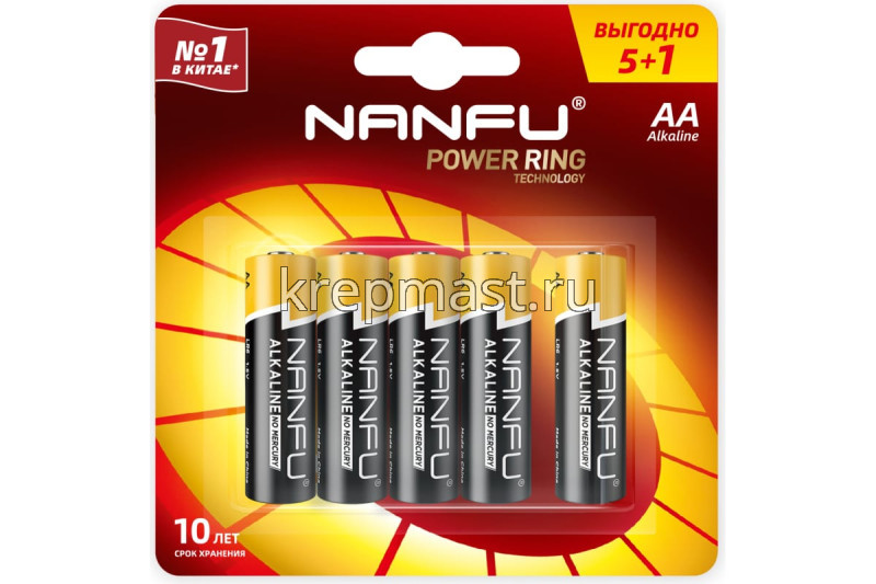 Батарейка Nanfu LR06 AА в интернет-магазине «Мастер Крепежа» по цене 91 руб. Более 7 наименований товаров в наличии в категории Батарейка АА (пальчиковые). Купить батарейка nanfu lr06 aа в Бугульме выгодно Вы можете on-line на нашем сайте, или отправив заявку по почте, а также по телефону или в пункте выдачи компании г. Казань, ул. Татарстан, 9, магазин "Мастер Крепежа". Доставка по Республике Татарстан и другие регионы РФ.