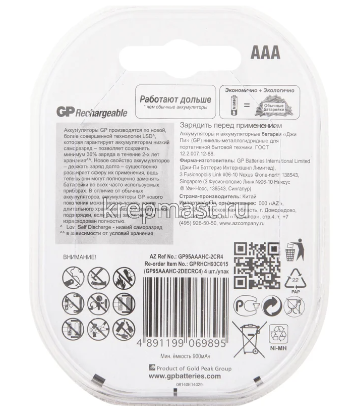 Батарейка Camelion Accu AAА аккумул. в интернет-магазине «Мастер Крепежа» по цене 348 руб. Более 8 наименований товаров в наличии в категории Батарейки для зарядных устройств / ЗУ . Купить батарейка camelion accu aaа аккумул. в Бугульме выгодно Вы можете on-line на нашем сайте, или отправив заявку по почте, а также по телефону или в пункте выдачи компании г. Казань, ул. Татарстан, 9, магазин "Мастер Крепежа". Доставка по Республике Татарстан и другие регионы РФ.