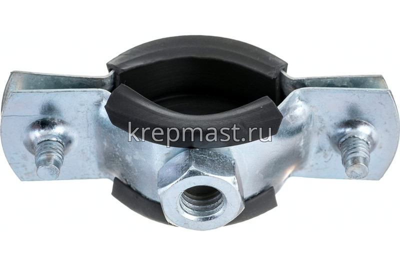 Хомут сантехнический с гайкой 20-24 мм представляет собой две металлические пластины, соединенные по краям регулировочными винтами м5 и резиновым уплотнителем. К хомуту приварена гайка м8 с метрической резьбой. Диаметр обжима трубы составляет от 20 до 24 мм. Изготавливается из оцинкованной стали толщиной 1 мм.