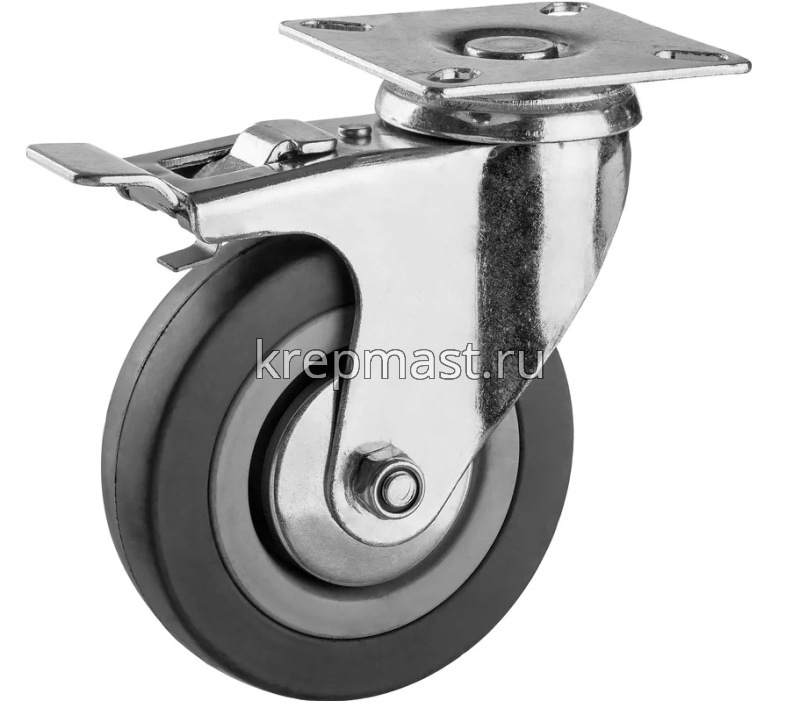 Колесо д.100мм поворотное ЗУБР на площадке резина с тормозом (г/п 100кг)