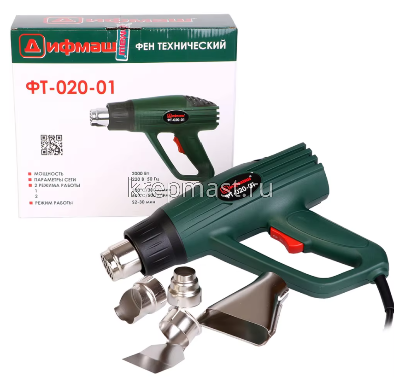 Фен ДИФМАШ (2000Вт, 300-600С ) в интернет-магазине «Мастер Крепежа» по цене 1729 руб. Более 9 наименований товаров в наличии в категории Фены технические. Купить фен дифмаш (2000вт, 300-600с ) в Бугульме выгодно Вы можете on-line на нашем сайте, или отправив заявку по почте, а также по телефону или в пункте выдачи компании г. Казань, ул. Татарстан, 9, магазин "Мастер Крепежа". Доставка по Республике Татарстан и другие регионы РФ.