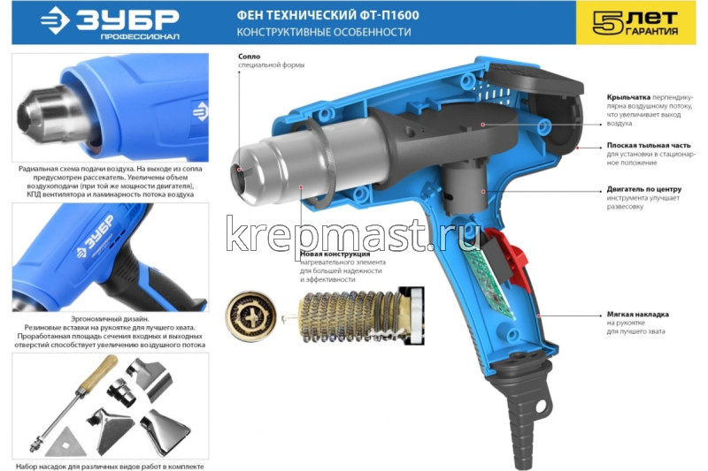 Фен ЗУБР (1600Вт, 350-550С ) в интернет-магазине «Мастер Крепежа» по цене 4477 руб. Более 9 наименований товаров в наличии в категории Фены технические. Купить фен зубр (1600вт, 350-550с ) в Бугульме выгодно Вы можете on-line на нашем сайте, или отправив заявку по почте, а также по телефону или в пункте выдачи компании г. Казань, ул. Татарстан, 9, магазин "Мастер Крепежа". Доставка по Республике Татарстан и другие регионы РФ.