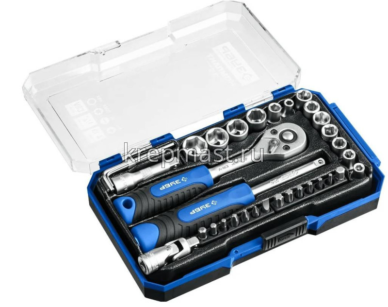 Инструмент выполнен из высококачественной хромованадиевой стали, что обеспечивает прочность, стойкость в износу и долгий срок службы. Хромированное покрытие защищает инструмент от коррозии. Набор поставляется в удобном пластиковом кейсе для рационального хранения и транспортировки.