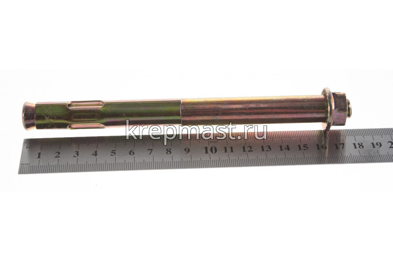 Анкер с гайкой 16 х 180изготовлен из высокоуглеродистой стали со специальным цинковым покрытием и применяется для надежного крепления тяжеловесных конструкций к твердым основаниям из полнотелых материалов.