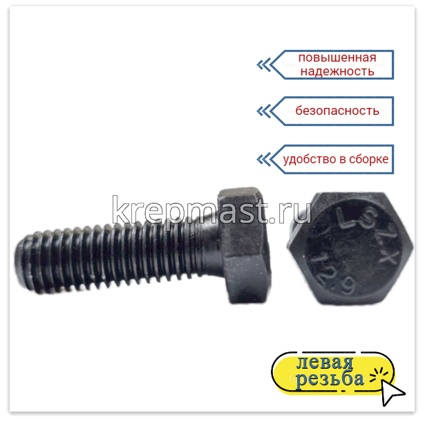 Болт 8х 25 с ЛЕВОЙ резьбой кл.пр. 12,9 DIN 933