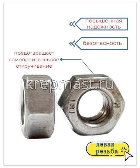 Гайка 6-гр. М 6 (1,0) DIN 934 левая резьба (LH) в Бугульме