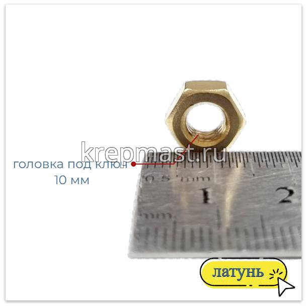 Гайка латунная не магнитится и служит для создания разъемных резьбовых соединений совместно с винтами, шпильками и болтами.