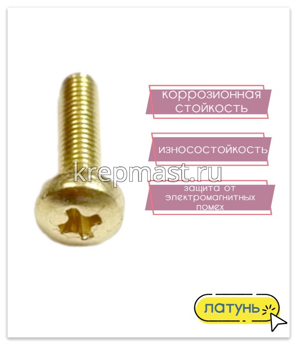 Винт латунный с полукруглой головкой DIN 7985 / ГОСТ 17475 М 3 х 12 используется в случае, когда необходимо создать немагнитный узел. Латунный винт применяется в приборостроении, авиации, атомной промышленности. Латунный крепеж стоек к органическим кислотам и углекислым растворам.