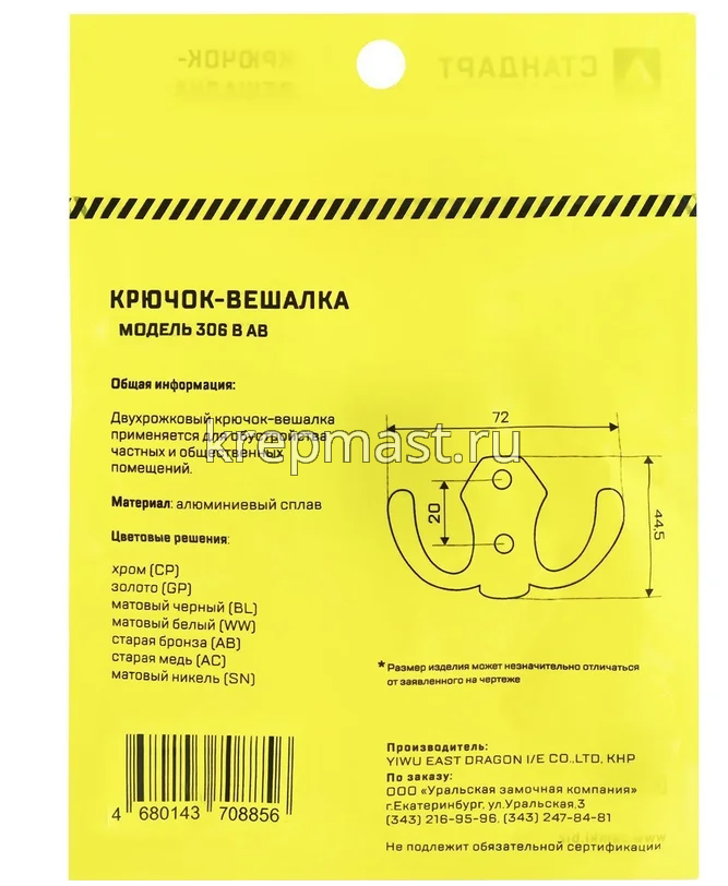 Крючок 306 В СР хром СТАНДАРТ в интернет-магазине «Мастер Крепежа» по цене 120 руб. Более 12 наименований товаров в наличии в категории Крючок-вешалка. Купить крючок 306 в ср хром стандарт в Бугульме выгодно Вы можете on-line на нашем сайте, или отправив заявку по почте, а также по телефону или в пункте выдачи компании г. Казань, ул. Татарстан, 9, магазин "Мастер Крепежа". Доставка по Республике Татарстан и другие регионы РФ.
