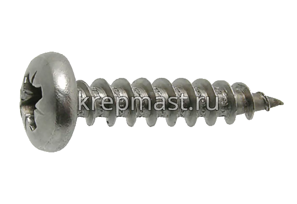 Саморез нержавеющий по металлу с полусферической головкой и острым концом DIN 7981 6.3 x 25 А2 применяется для крепления стальных и других листовых материалов (дерево, фанера) к металлическим и деревянным несущим конструкциям.