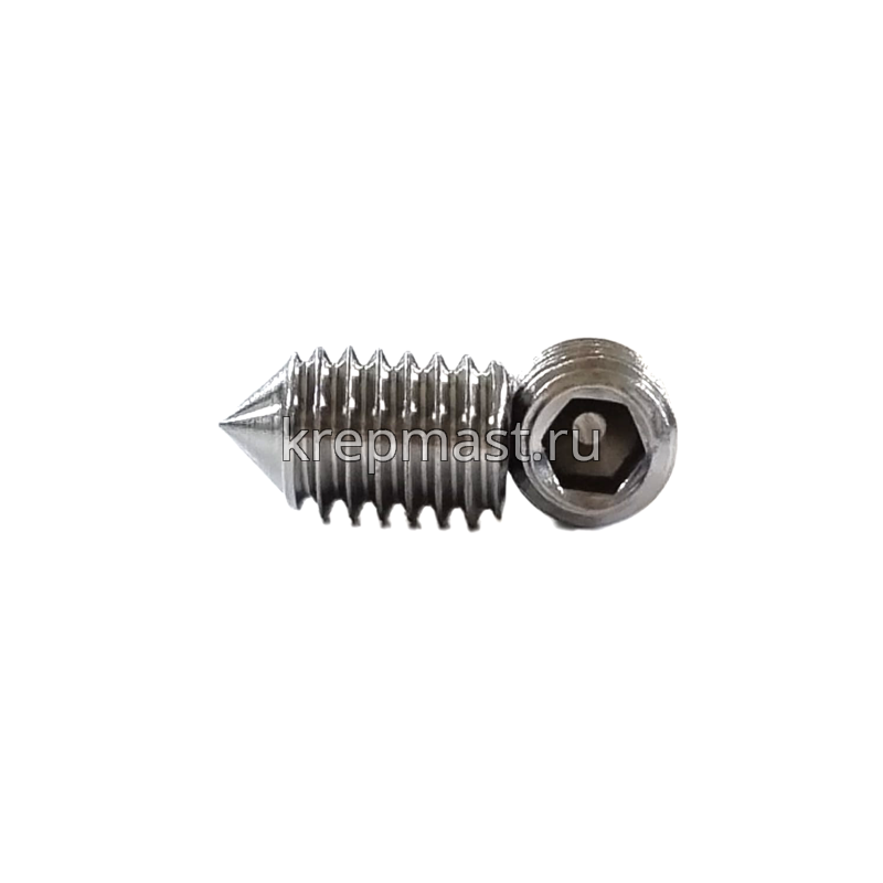 Винт нержавеющий установочный с внутренним шестигранником и заостренным концом DIN 914 6 х 10 А2 применяется для стопорения различных деталей между собой. Требуется предварительное сверление и нарезание резьбы диаметром 6 мм.