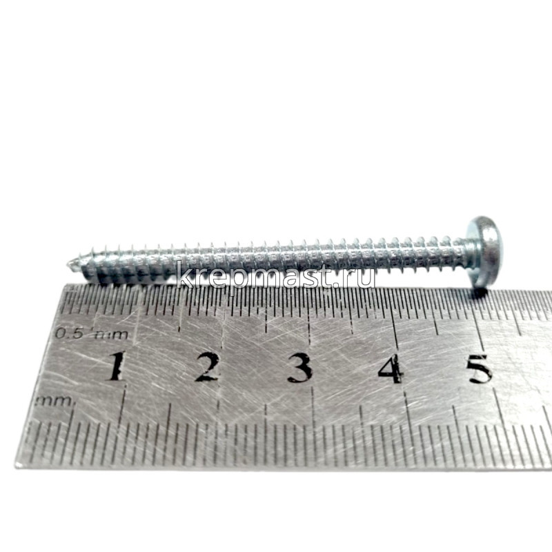 Саморез по металлу с полусферической головкой и острым концом DIN 7981 4.8 x 50 применяется для крепления стальных и других листовых материалов (дерево, фанера) к металлическим и деревянным несущим конструкциям.