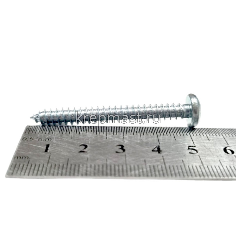 Саморез по металлу с полусферической головкой и острым концом DIN 7981 5.5 x 50 применяется для крепления стальных и других листовых материалов (дерево, фанера) к металлическим и деревянным несущим конструкциям.