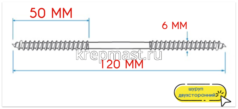 Двусторонний шуруп изготавливается из высококачественной инструментальной стали марки С10008. Для защиты от негативного воздействия влаги и появления коррозии, саморез с двухсторонней резьбой покрывается тонким слоем белого цинка (горячее цинкование).