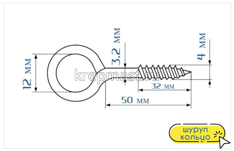 Шуруп-кольцо 4,0х 50 в интернет-магазине «Мастер Крепежа» по цене 11 руб. Более 25 наименований товаров в наличии в категории Шуруп - кольцо. Купить шуруп-кольцо 4,0х 50 в Бугульме выгодно Вы можете on-line на нашем сайте, или отправив заявку по почте, а также по телефону или в пункте выдачи компании г. Казань, ул. Татарстан, 9, магазин "Мастер Крепежа". Доставка по Республике Татарстан и другие регионы РФ.