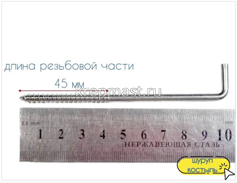 Шуруп костыль 5,0 х 100,0- костыль с шурупной резьбой устанавливается в пластиковый дюбель или в дерево. Находит широкое применение в домашнем хозяйстве.