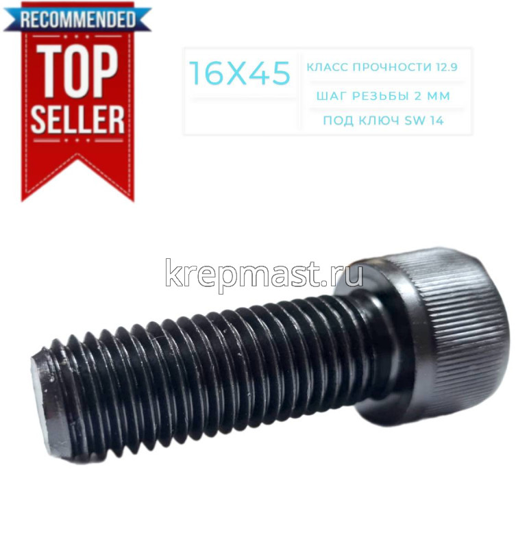 Винт с внутр.шестигранником 16 х 45 черный кл.пр.12.9 п/р DIN 912