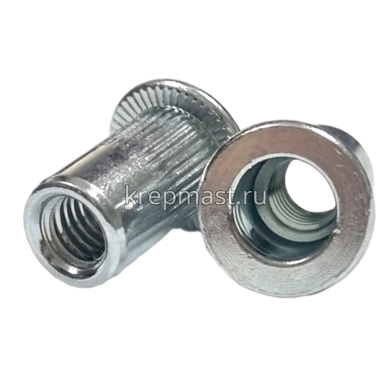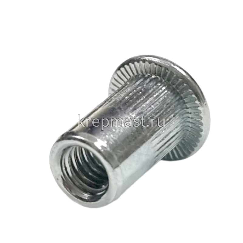 Клепки резьбовые М6 изготавливают из прочной и устойчивой к воздействию коррозии оцинкованной стали.