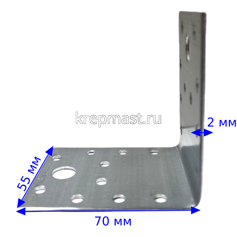 Соединительный уголок KL2 70х70х55х2 мм предназначен для крепления несущих элементов в стропильно-подстропильной системе при строительстве деревянных домов.