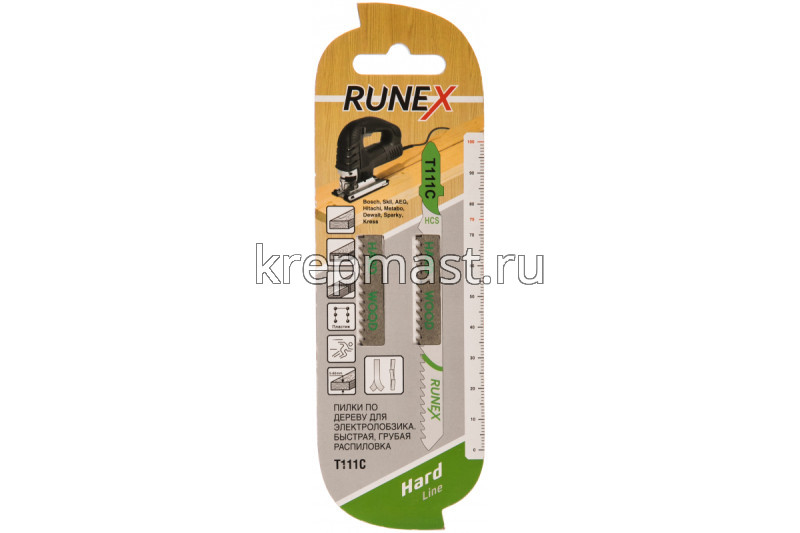 Пилки для электролобзика RUNEX Т 111 C пилки 100мм, 2 шт. грубый рез подходят для распила дерева, фанеры и пластика, толщиной от 6 до 60 мм.