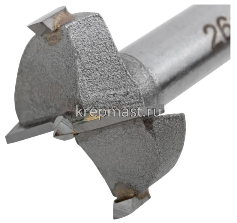 Сверло Форстнера с карбидными вставками по дереву 26 мм предназначено для точного сверления сквозных и глухих отверстий в древесине и пластике.