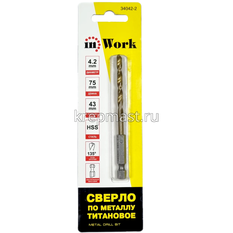 Сверло по металлу 4,2 мм U-образ.хвост.под биту