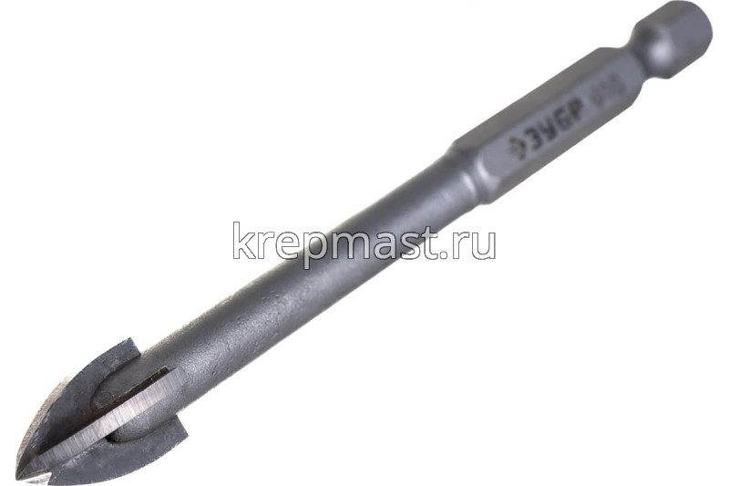 Сверло по стеклу с четырехгранным хвостовиком М10 Зубр используется для сверления отверстий в кафеле, керамике и стекле с помощью электродрели. Сверло по плитке имеет шестигранный хвостовик для надежной фиксации в патроне, а также твердосплавные пластины ВК6 с отшлифованными режущими кромками для эффективной работы. Сверло по керамике имеет четыре режущих лезвия. Благодаря специальной проточке хвостовика 1/4 дюйма возможно использование с быстросъёмным адаптером. При работе сверлом рекомендуется режущий материал охлаждать водой.