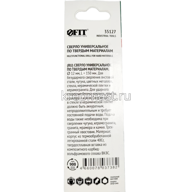 Сверло универсальное 12х150мм (сталь, чугун, цв.мет, стекло, керамогранит) в интернет-магазине «Мастер Крепежа» по цене 294 руб. Более 13 наименований товаров в наличии в категории СВЕРЛА универсальные (опалубочные). Купить сверло универсальное 12х150мм (сталь, чугун, цв.мет, стекло, керамогранит) в Бугульме выгодно Вы можете on-line на нашем сайте, или отправив заявку по почте, а также по телефону или в пункте выдачи компании г. Казань, ул. Татарстан, 9, магазин "Мастер Крепежа". Доставка по Республике Татарстан и другие регионы РФ.
