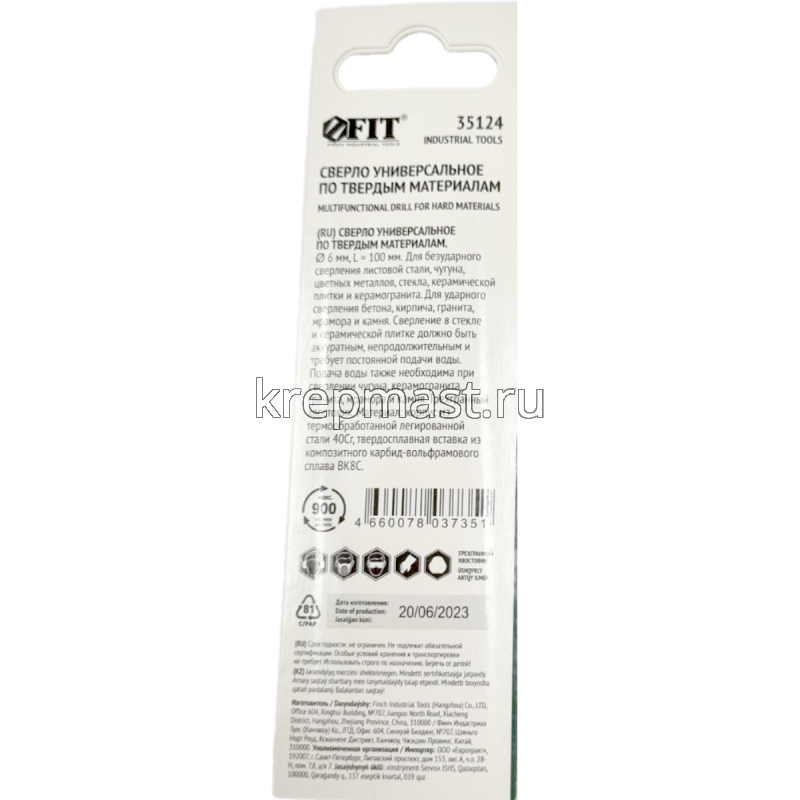 Сверло универсальное 6х100мм (сталь, чугун, цв.мет, стекло, керамогранит) в Бугульме