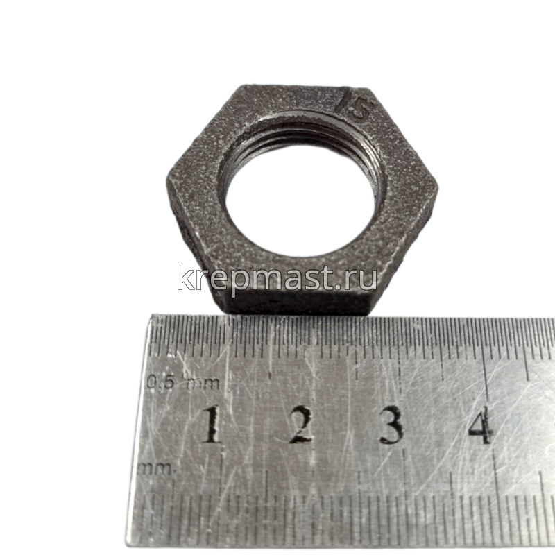Контргайка чугунная Ду15 (1/2 дюйма) ВР ГОСТ 8961-75 - применяется для соединения нескольких элементов трубопровода. Такая деталь препятствует раскручиванию соединений благодаря трению, возникающему между гайками, и применяется она там, где возможна вибрация узлов, особенно в случаях значительного движения по болту.