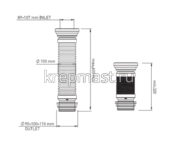 Удлинитель гибкий ZEGOR (G701-1) д/унитаза 600мм - гибкая армированная труба для унитаза, 600мм,стопорное кольцо интегрировано в корпус.