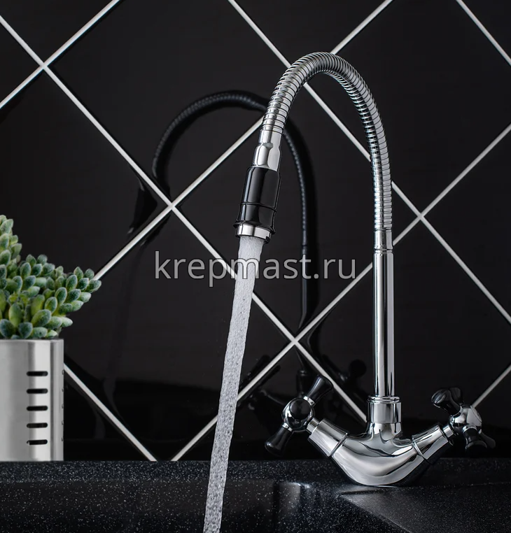 Смеситель д/кухни SL 92BL-279F с высоким изливом (хром/черный)
