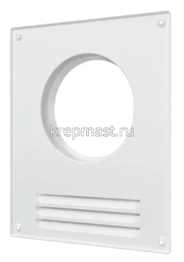 Площадка торцевая пластиковая с решеткой предназначена для соединения приточных или вытяжных вентиляционных каналов круглого сечения диаметром 115 мм с вентиляционным отверстием. Крепится к стене или потолку с помощью шурупов. Конструкция предусматривает дивиатор для предотвращения обратной тяги.
