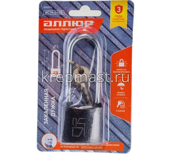 Замок навесной АЛЛЮР ВС1Ч-340Д d.5мм дл.дужка в интернет-магазине «Мастер Крепежа» по цене 250 руб. Более 31 наименований товаров в наличии в категории Замок навесной АЛЛЮР. Купить замок навесной аллюр вс1ч-340д d.5мм дл.дужка в Бугульме выгодно Вы можете on-line на нашем сайте, или отправив заявку по почте, а также по телефону или в пункте выдачи компании г. Казань, ул. Татарстан, 9, магазин "Мастер Крепежа". Доставка по Республике Татарстан и другие регионы РФ.